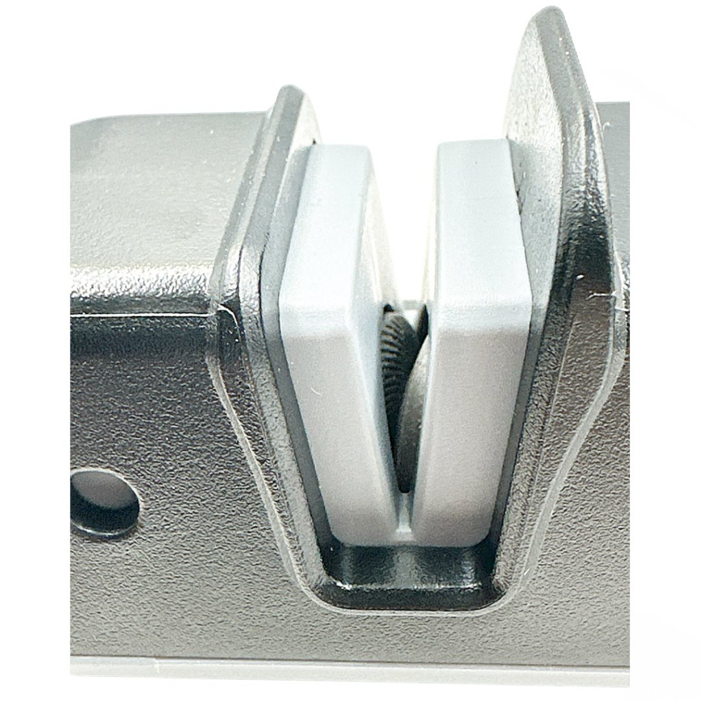 • Maximális Stabilitás és Biztonság: A zökkenőmentes és biztonságos élezés érdekében a készülék csúszásgátló talpakkal rendelkezik. Ez a stabilitás megakadályozza az élező elmozdulását használat közben, csökkentve a sérülés kockázatát és növelve az élezés pontosságát.