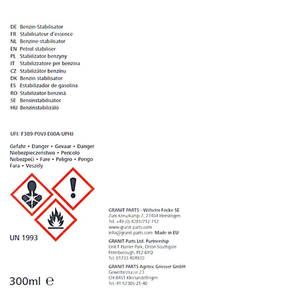 GRANIT® 18449454 Üzemanyag Stabilizáló – Benzin, 300 ml | Professzionális Védelem Benzinmotorokhoz