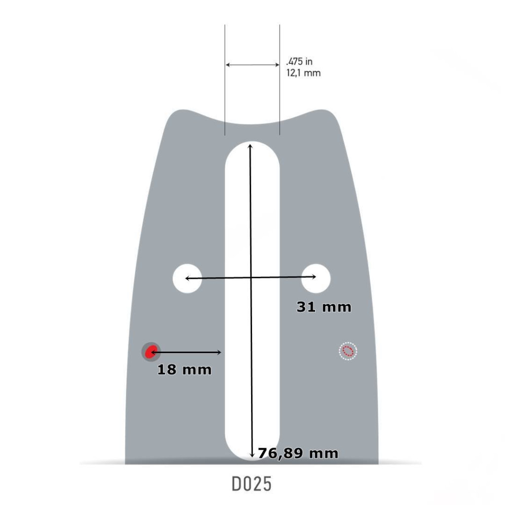 • Befogatás típusa: Stihl D025 (megegyezik a Stihl 3003-as gyári rögzítési szabvánnyal, 12.1 mm-es tőcsavar horonnyal).