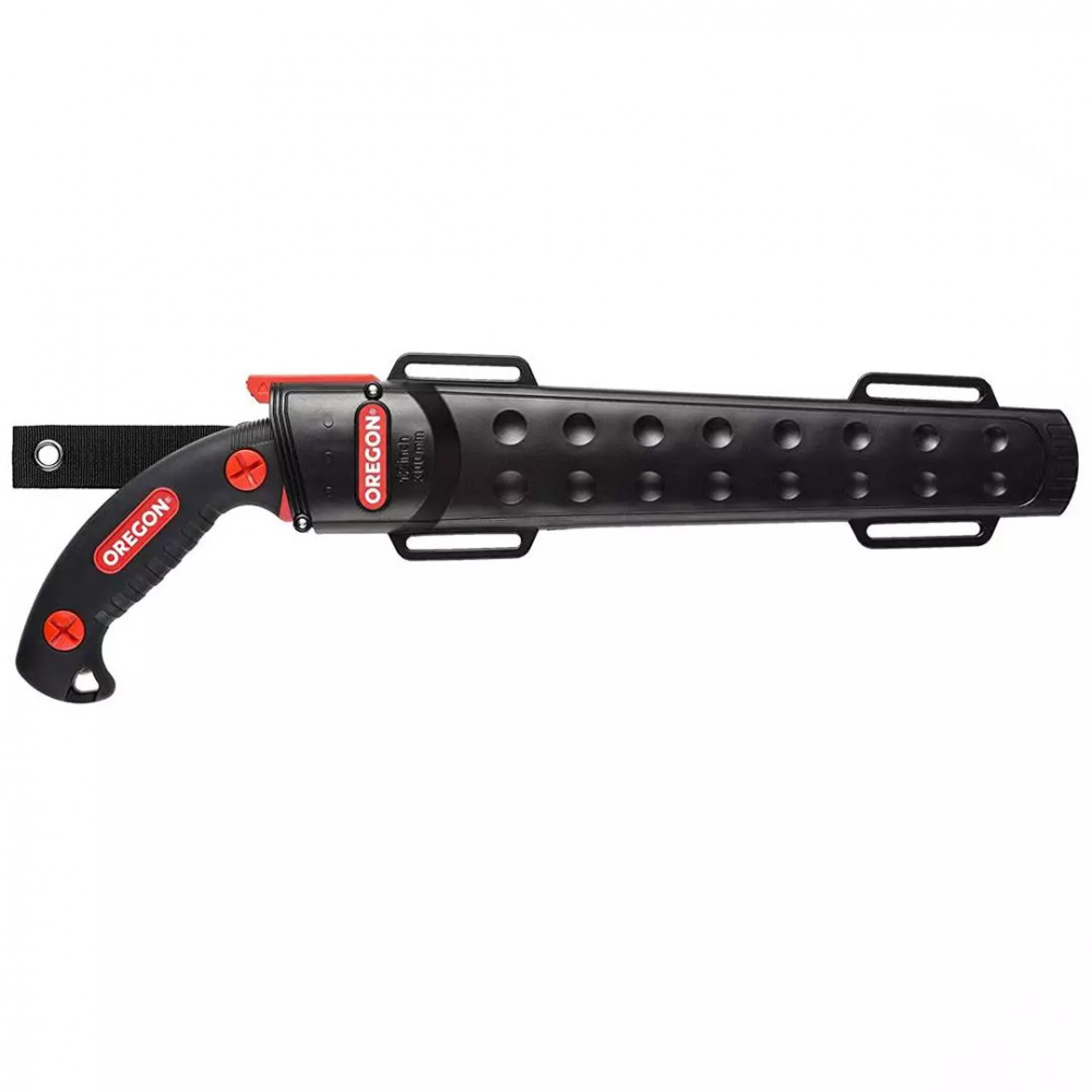 A mellékelt tok a szállítási védelmen túl munkabiztonsági funkciót is ellát. Az övcsipesz segítségével a nadrágszíjra rögzíthető, így a faágak közötti mászáskor a kezei szabadon maradnak, és a fűrész azonnal, biztonságosan előhúzható, majd egy mozdulattal visszatehető a helyére.