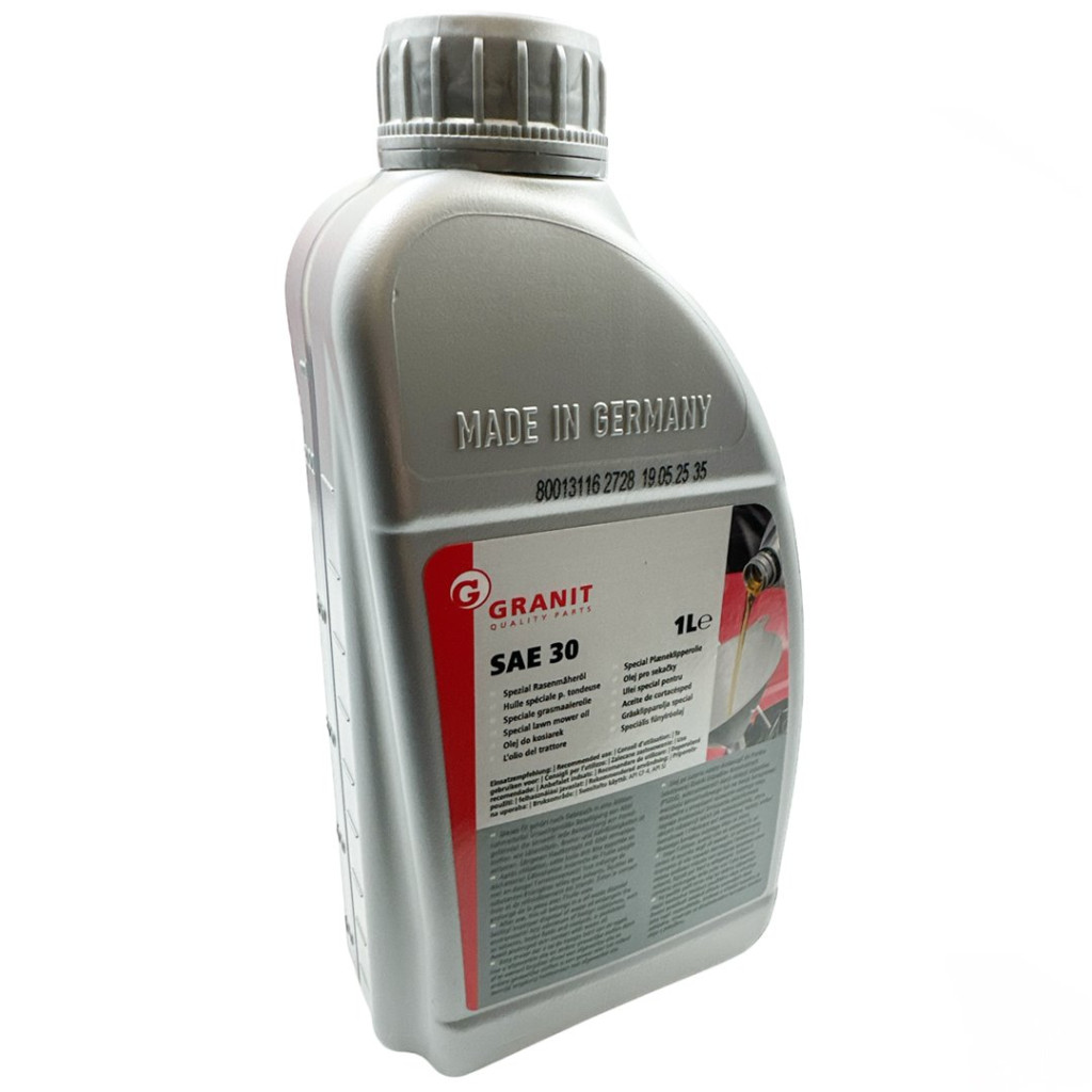 • 2 db Granit® speciális fűnyíróolaj/motorolaj: SAE30 viszkozitás, 1,0 liter/flakon (Made in Germany) - Cikkszám: 210SAE30GEB1