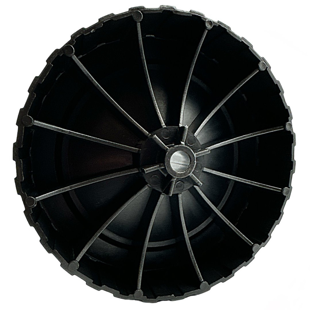 Ez a 035/2028-B/12-es cikkszámú kerék csapágy nélküli, úgynevezett műanyag siklóagyas kialakítású. Ez azért ideális a fűnyíró adapterekhez, mert a por és a fűnedvesség nem tudja tönkretenni az érzékeny golyóscsapágyakat, ráadásul a tisztítása és karbantartása (kenése) is sokkal egyszerűbb.